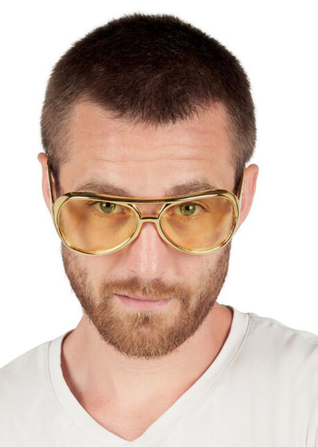 Lunettes Elvis, avec montures dorées et verres jaunes.
