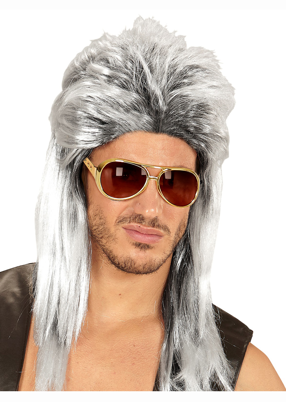 Lunettes Elvis, avec montures dorées et verres dégradés marron.