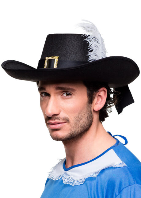 Chapeau de Mousquetaire, Noir et Plume Blanche
