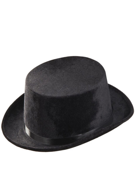 Chapeau Haut de Forme, Aspect Velours, Noir