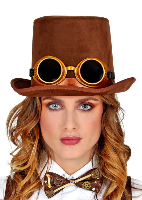 Chapeau Steampunk Marron, Lunettes Amovibles