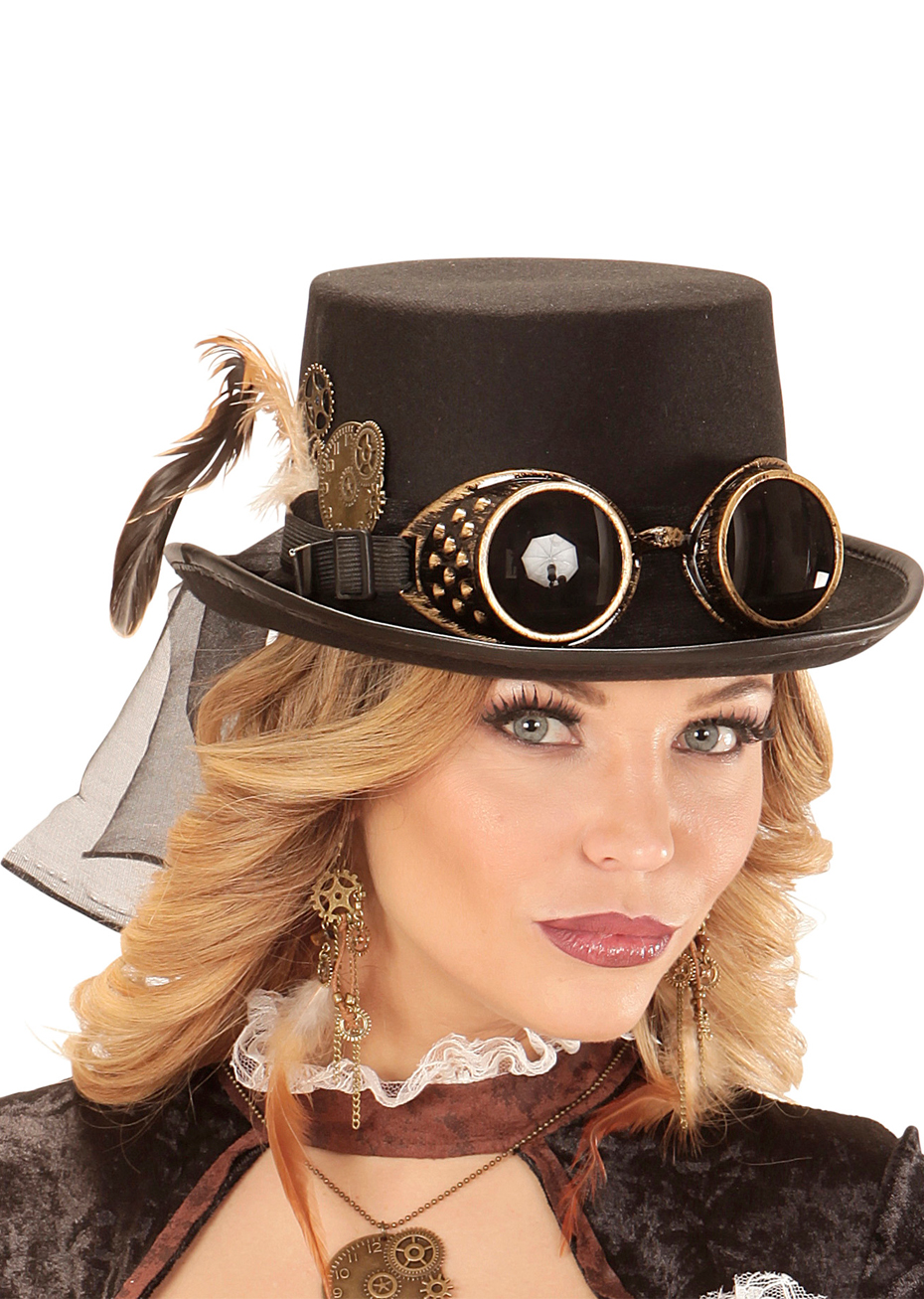 Chapeau Haut de Forme Steampunk, Lunettes Amovibles