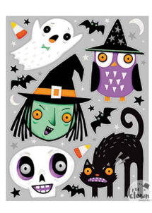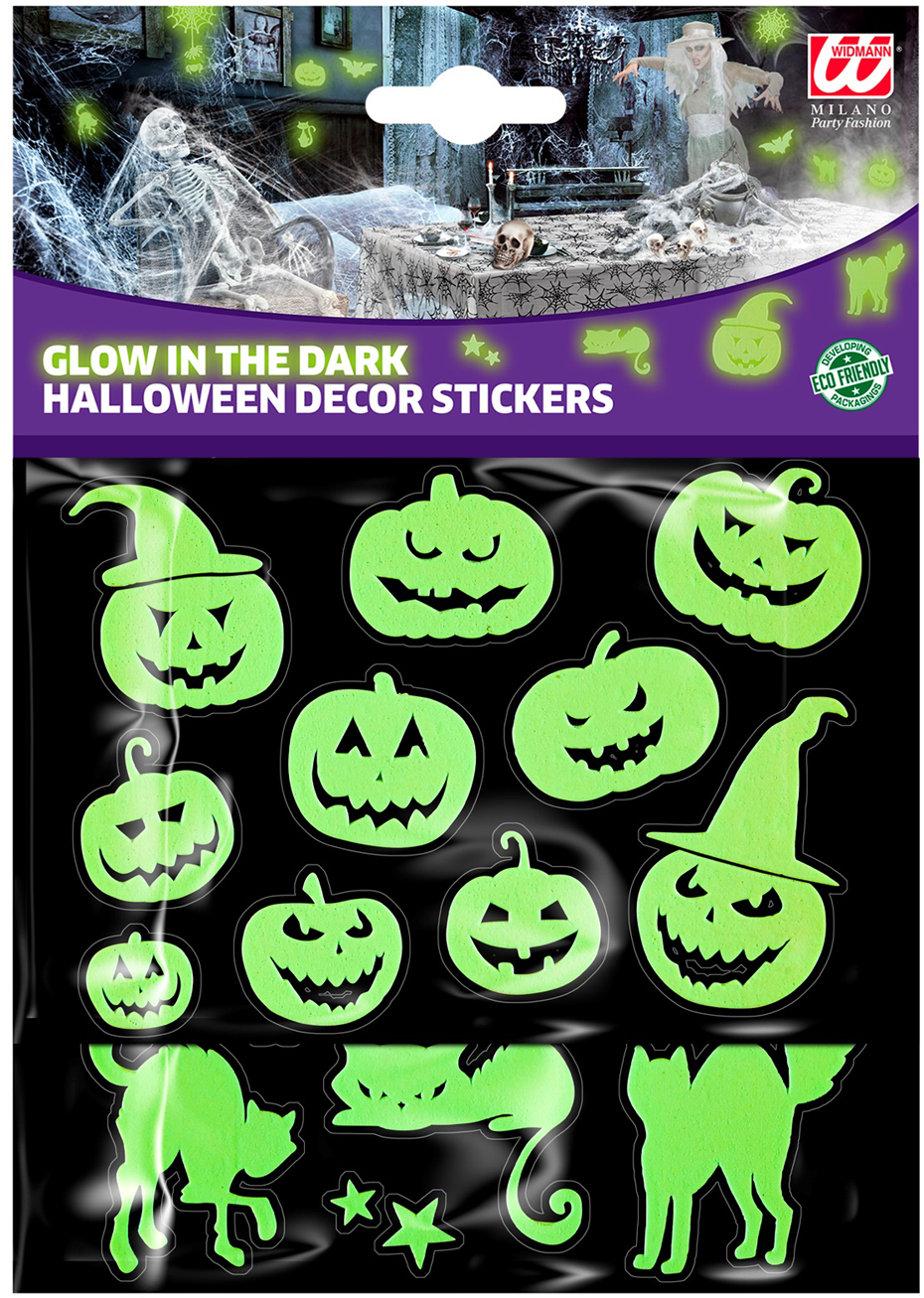 Autocollants Halloween, chats et citrouilles, phosphorescents.