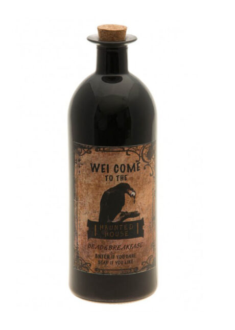 Cette bouteille Halloween est en verre noir, avec un petit bouchon de liège.
