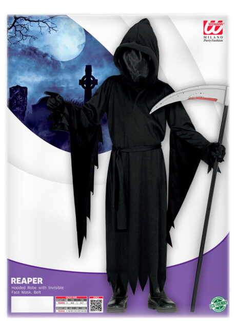 Fais frissonner avec ce déguisement de Faucheur Scream Reaper. Ce costume terrifiant comprend une longue robe noire à capuche à larges manches découpées, un masque sans visage opaque qui te permet de voir sans être vu, et une ceinture en tissu pour ajuster la tenue. Idéal pour Halloween, une fête déguisée ou un événement horrifique, ce déguisement n’est pas sans rappeler l’iconique tenue de Scream.