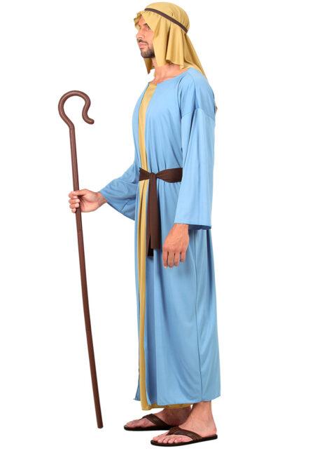 Ce déguisement de Joseph est parfait pour incarner un berger ou un personnage biblique. Il comprend une longue tunique beige avec un long gilet bleu ciel, une ceinture et une coiffe assortie. Idéal pour une soirée à thème Religions, une animation de Noël ou un évènement à thème.