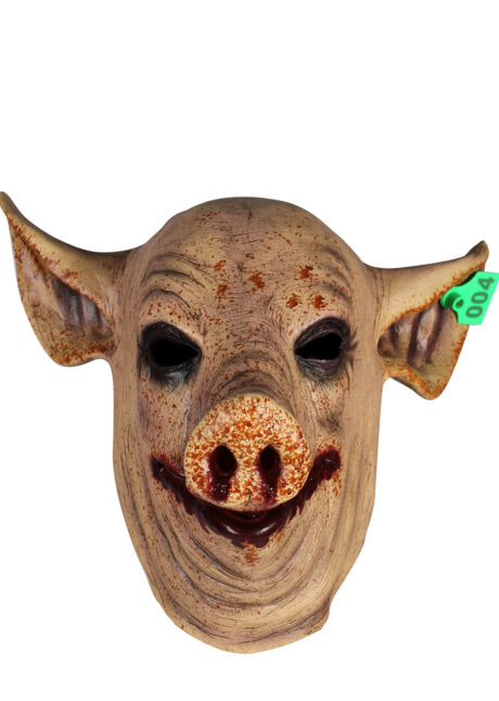 Masque complet de cochon égorgé en latex, avec clip à l’oreille.
